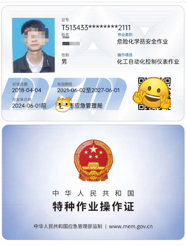 ?;纷鳂I證:過氧化工藝,烷基化工藝,氧化工藝,加氫工藝,化工自動化控制儀表作業;
