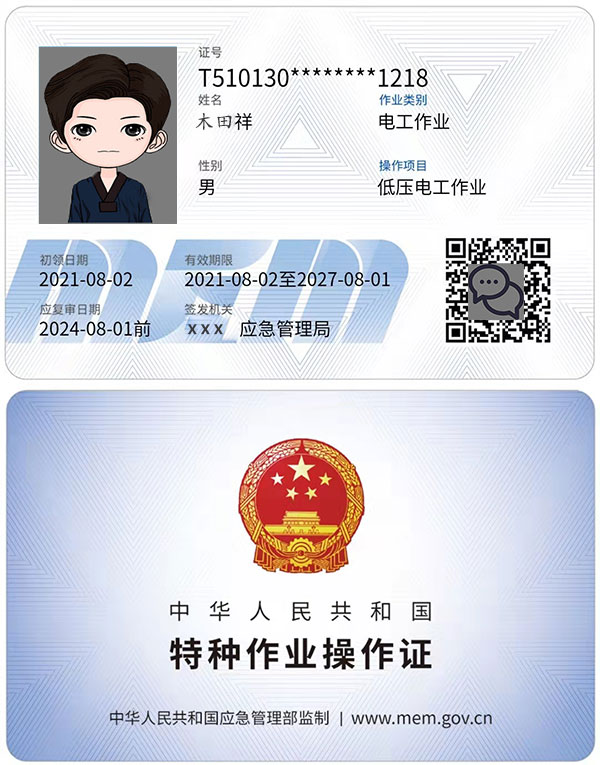 應急管理局:全工種報考:低壓電工作業,高壓電工作業,熔化焊接與熱切割作業,電力電纜,繼電保護,電氣試驗,防爆電氣作業,高處安裝維護拆除作業,登高架設作業,制冷與空凋設備運行操作作業,制冷與空凋設備安裝修理作業特種從業人員上崗證是每3年一審